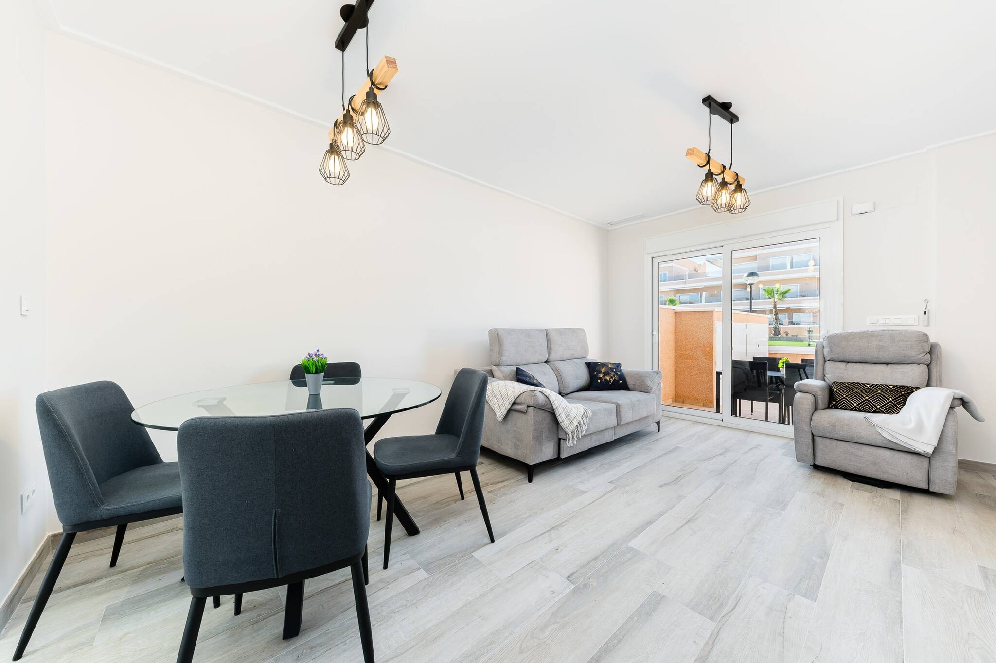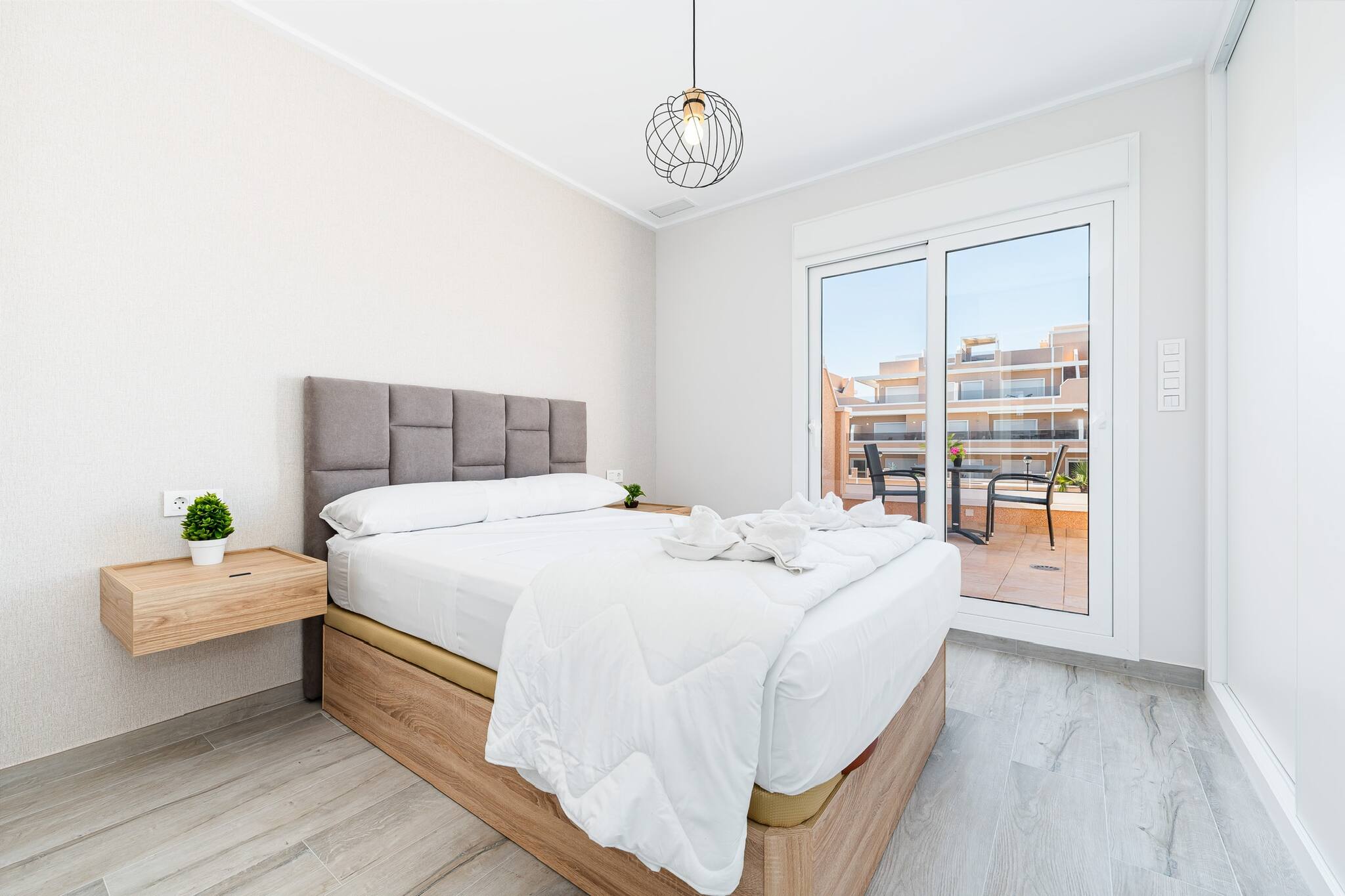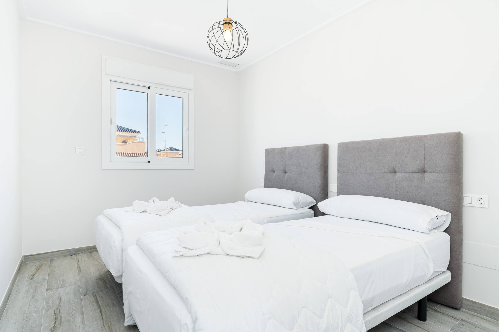 Het appartement in Torre de la Horadada heeft 3 slaapkamer(s) en kan gereserveerd worden tot 6 personen. Deze comfortabel ingerichte woning is erg groot, De accommodatie heeft een oppervlakte van 130 m². Uw acommodatie ligt in een mooie woonwijk en vlak aan zee. De woning bevindt zich op 200 m van het zandstrand "Playa de Las Higuericas", 350 m van het zandstrand "Playa del Mojón", 600 m van het rotsstrand "Zonas rocosas del Mojón", 1 km van de supermarkt "Supermercados locales", 2 km van het zandstrand "Playa del Puerto", 2 km van het zandstrand "Playa de los Jesuitas", 2 km van het rotsstrand "Rocamar", 2 km van de supermarkt "Mercadona", 2 km van het dorp "Torre de la Horadada centro", 3 km van het dorp "Pilar de la Horadada", 3 km van de supermarkt "Lidl", 3 km van het dorp "San Pedro del Pinatar", 4 km van het dorp "Mil Palmeras", 7 km van de golfbaan "Lo Romero Golf", 8 km van de golfbaan "Campoamor Golf", 9 km van de golfbaan "Las Ramblas". Tevens heeft u de beschikking over Wasmachine, Internet (wifi), Warmtepomp, Airconditioning, Privé Zwembad, 1 Televisie. De aparte keuken, met inductie kookplaat, is uitgerust met koelkast, magnetron, oven, vriezer, servies/bestek, keukengerei, koffiezetapparaat, broodrooster, waterkoker, , .