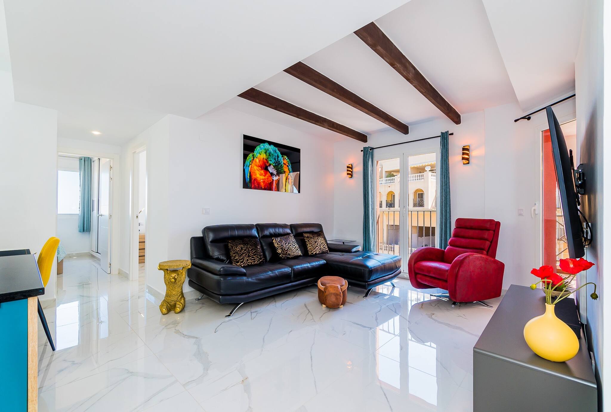 Het appartement in Torrevieja heeft 3 slaapkamer(s) en kan gereserveerd worden tot 6 personen. Deze gezellig ingerichte woning is modern, De accommodatie heeft een oppervlakte van 80 m². Uw acommodatie ligt in een mooie woonwijk en vlak aan zee. De woning bevindt zich op 200 m van het zandstrand "Playa de Los Locos", 300 m van de supermarkt "Consum", 300 m van de supermarkt "Dialprix", 300 m van de supermarkt "Carrefour Express", 600 m van het zandstrand "Playa del Cura", 1 km van het dorp "Centro de Torrevieja", 10 km van de golfbaan "Villamartín Golf", 13 km van de golfbaan "La Marquesa Golf (Ciudad Quesada)". Tevens heeft u de beschikking over Lift, Tuin, Tuinmeubilair, Wasmachine, Strijkijzer, Internet (wifi), Haardroger, Warmtepomp, Airconditioning, Gemeenschappelijk Zwembad, Garage in het zelfde gebouw, 1 Televisie. De open keuken, met inductie kookplaat, is uitgerust met koelkast, magnetron, oven, vriezer, servies/bestek, keukengerei, koffiezetapparaat, broodrooster, waterkoker, , .