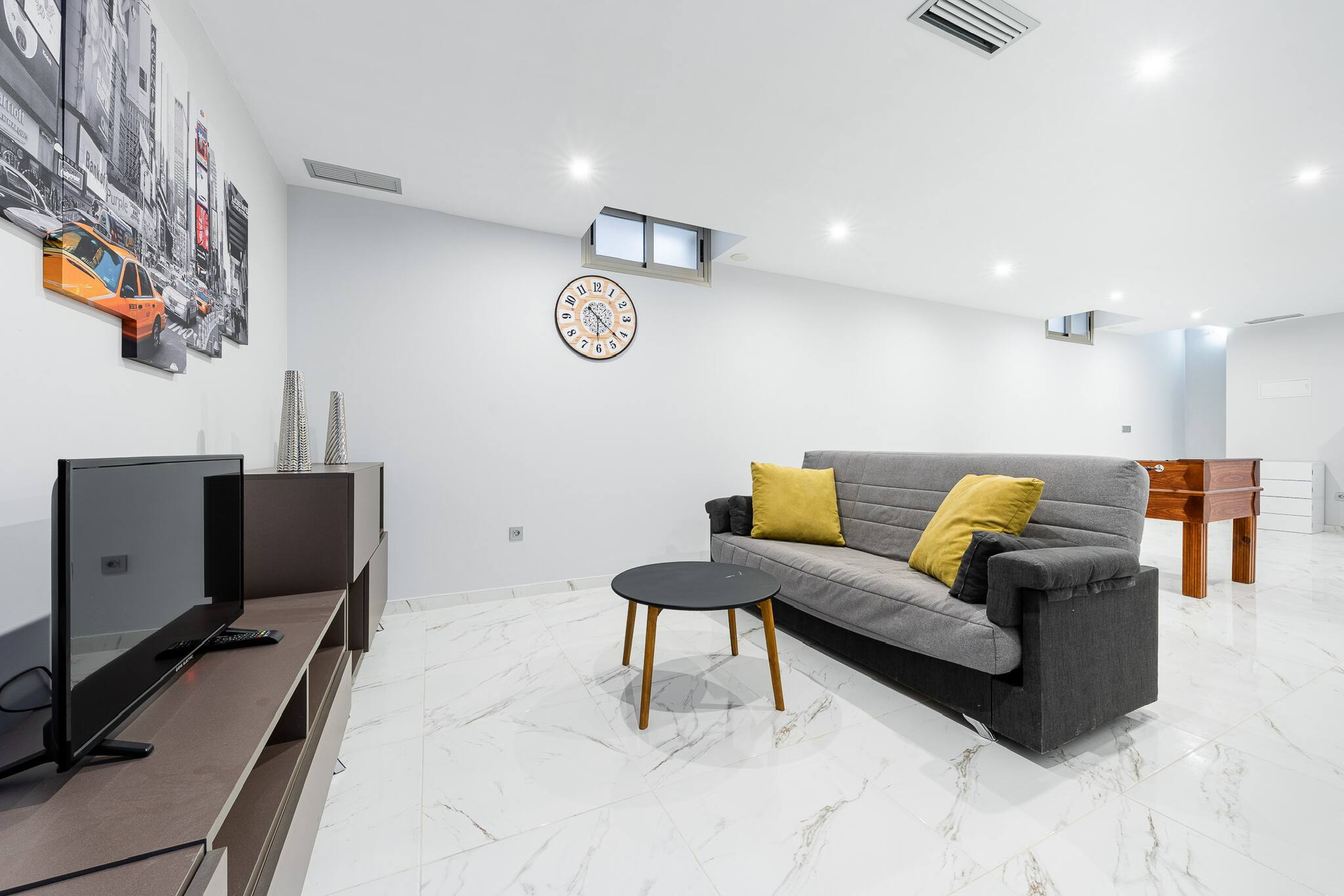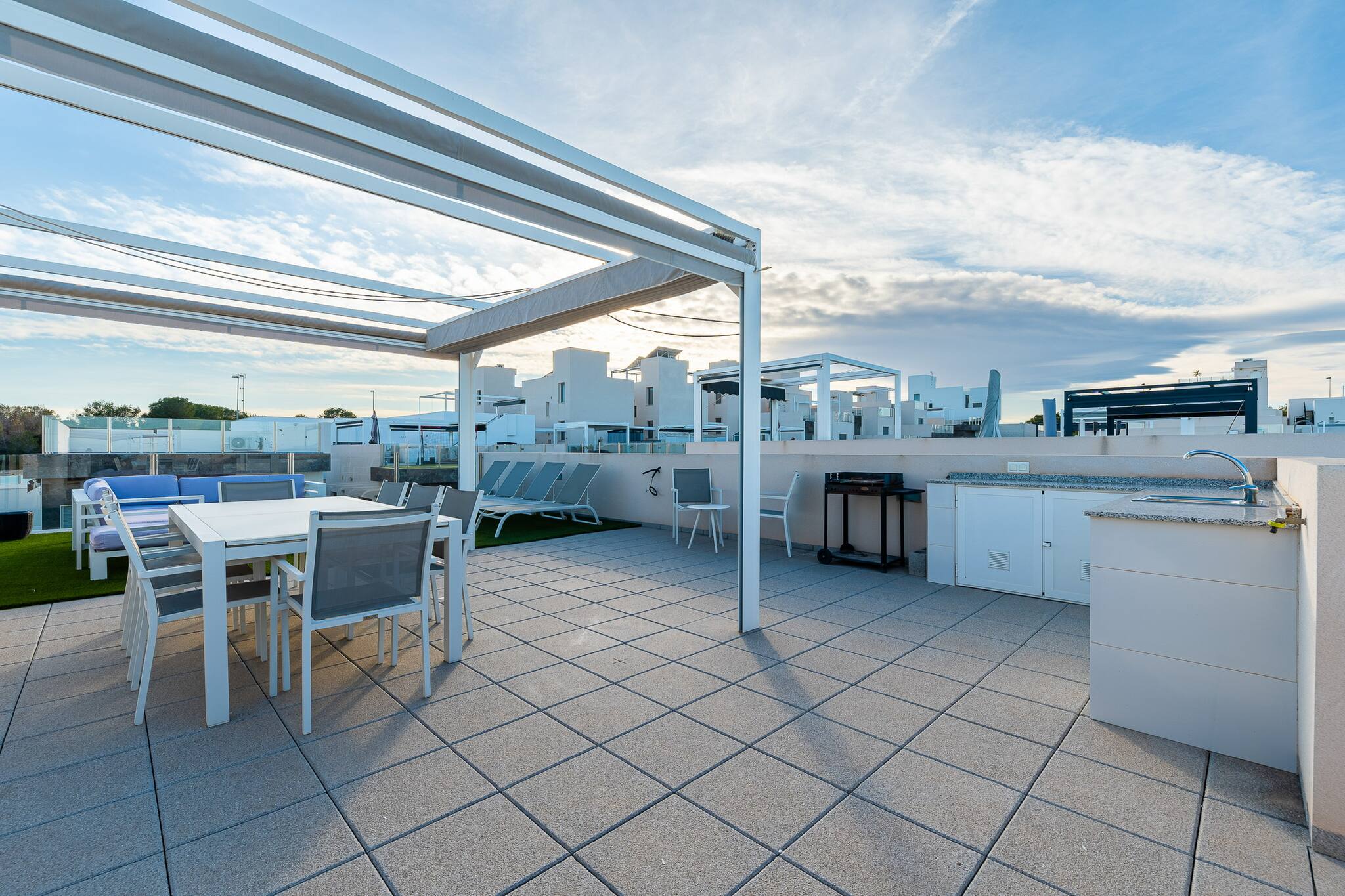 Het huis in Orihuela Costa heeft 5 slaapkamer(s) en kan gereserveerd worden tot 10 personen. Deze comfortabel ingerichte woning is goed belicht, De accommodatie heeft een oppervlakte van 180 m². Uw acommodatie ligt in een mooie woonwijk en in een residentieel complex. De woning bevindt zich op 2 km van de golfbaan "Villamartín Golf", 4 km van de golfbaan "Las Ramblas Golf", 4 km van het zandstrand "Playa Flamenca (Cala Estaca)", 4 km van het zandstrand "Cala Mosca (Playa Flamenca)", 5 km van het zandstrand "Playa de La Zenia (Cala Bosque)", 6 km van het zandstrand "Cala Capitán (Cabo Roig)", 6 km van de golfbaan "Real Club de Golf Campoamor", 9 km van de golfbaan "Las Colinas Golf & Country Club". Tevens heeft u de beschikking over Wasmachine, Barbecue, Strijkijzer, Internet (wifi), Haardroger, Warmtepomp, Airconditioning, Privé Zwembad, Openlucht parkeerplaats, 1 Televisie. De open keuken, met inductie kookplaat, is uitgerust met koelkast, magnetron, oven, vriezer, servies/bestek, keukengerei, koffiezetapparaat, broodrooster, waterkoker, , .