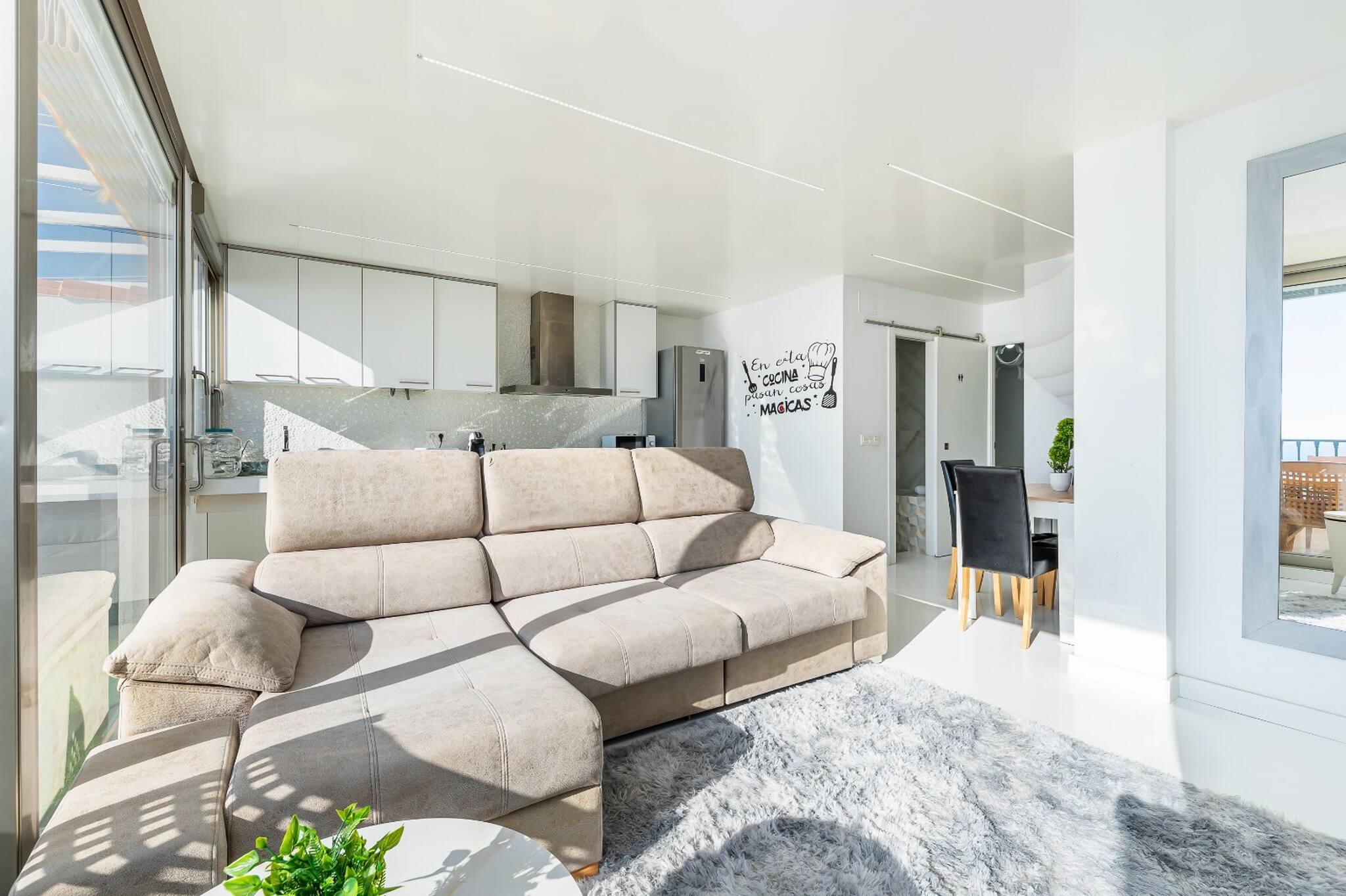 Apartament znajduje sie w miejscowości santa pola ma 2 sypialnie i obłożenie dla 4 osób. Przytulny i bardzo jasne Obiekt o powierzchni mieszkalnade 60 m². Znajduje się w pobliżu 100 m plaży piaskowej "Playa de Santa Pola del Este", 200 m plaży skalistej "Calas de Santa Pola del Este", 500 m plaży skalistej "Cala del Aljub", 500 m plaży piaskowej "Playa del Varadero", 1 km supermarkecie "Supermercados locales", 2 km supermarkecie "Mercadona", 2 km plaży piaskowej "Playa de Levante", 2 km miasta "Santa Pola Centro", 3 km supermarkecie "Lidl", 6 km miasta "Gran Alacant", 15 km polu golfowym "El Plantío Golf", 18 km polu golfowym "La Marquesa Golf" i Znajduje się w spokojnej strefa i tuż obok morza. Zakwaterowanie jest wyposażone w następujące rzeczy Pralka, Internet (wifi), Pompa ciepła, Klimatyzacja, Prywatny, garaż, 1 TV. Kuchnia otwarta od płyta indukcyjna, jest wyposażone w chłodziarka, mikrofalówka, piekarnik, zamrażarka, naczynia/sztućce, przybory kuchenne i ekspres do kawy.