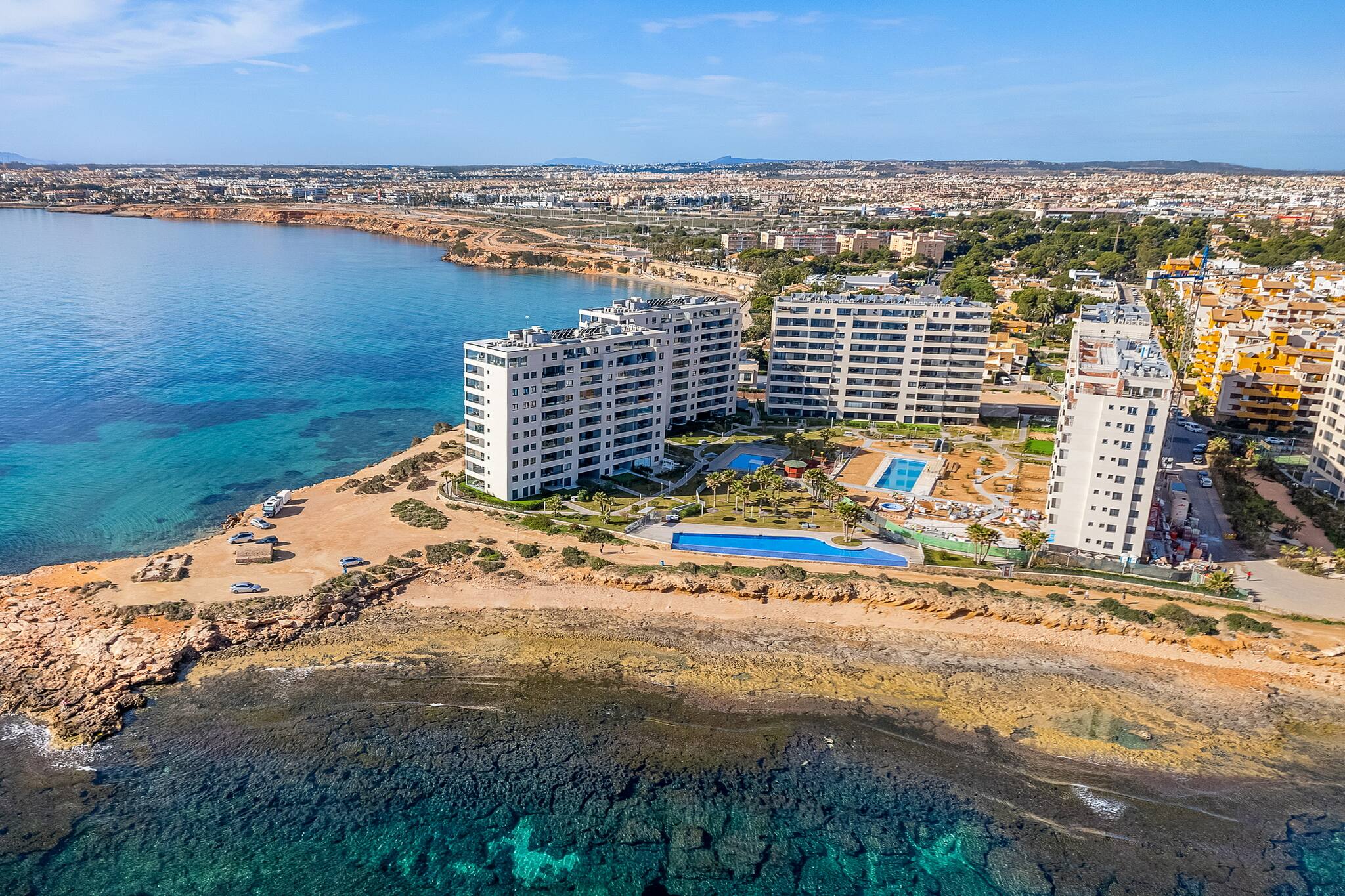 Apartament znajduje sie w miejscowości Torrevieja ma 2 sypialnie i obłożenie dla 4 osób. Przytulny i nowoczesny Obiekt o powierzchni mieszkalnade 88 m². Znajduje się w pobliżu 400 m plaży piaskowej "Playa de Punta Prima", 500 m supermarkecie "Consum", 800 m plaży skalistej "Cala Ferris", 2 km supermarkecie "Mercadona", 2 km plaży piaskowej "Playa de Los Náufragos", 3 km miasta "Centro de Torrevieja", 7 km polu golfowym "Villamartín Golf", 10 km polu golfowym "Campoamor", 10 km polu golfowym "Las Ramblas" i Znajduje się w osiedlu mieszkaniowym strefa i tuż obok morza.Zakwaterowanie jest wyposażone w następujące rzeczy Pralka, Internet (wifi), Pompa ciepła, Klimatyzacja, Prywatny, garaż, 1 TV.Kuchnia otwarta od płyta indukcyjna, jest wyposażone w chłodziarka, mikrofalówka, piekarnik, zamrażarka, zmywarka, naczynia/sztućce, przybory kuchenne, ekspres do kawy, opiekacz/toster i czajnik.