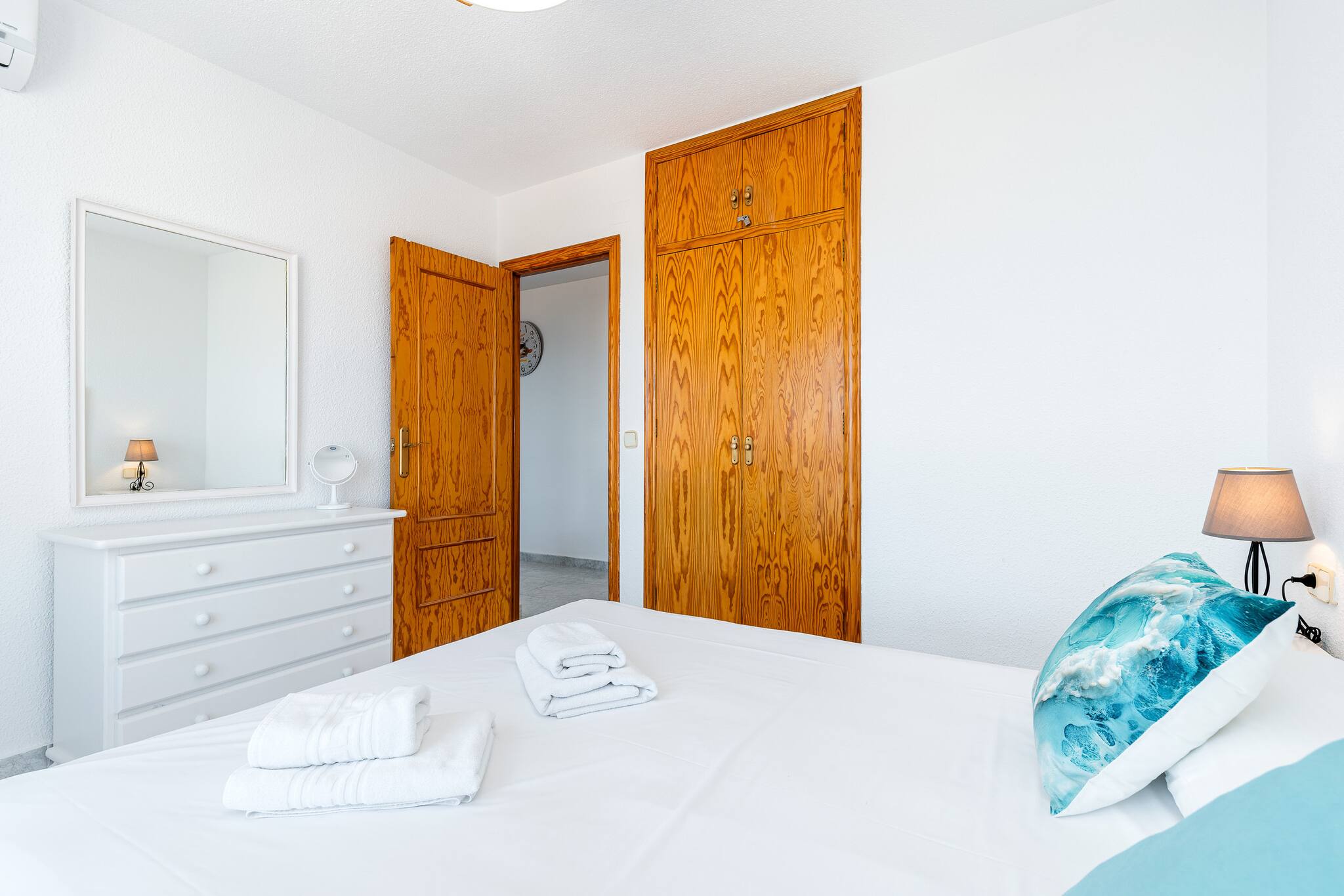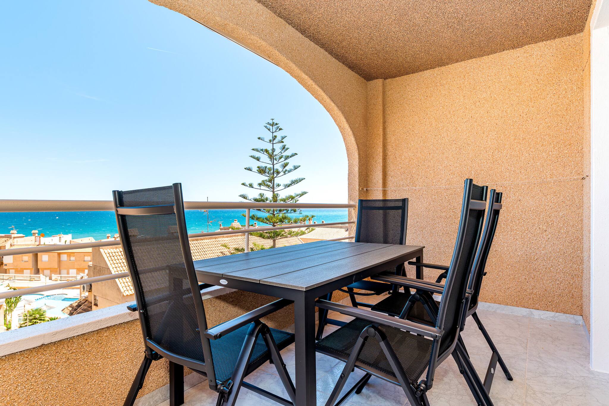 Apartament znajduje sie w miejscowości Torrevieja ma 2 sypialnie i obłożenie dla 6 osób. Przytulny i bardzo jasne Obiekt o powierzchni mieszkalnade 79 m². Znajduje się w pobliżu 350 m plaży skalistej "Cala del Moro", 400 m plaży skalistej "Calas de Torre del Moro", 500 m supermarkecie "Dialprix", 800 m plaży piaskowej "Playa Cabo Cervera", 1 km plaży piaskowej "Playa de La Mata", 2 km miasta "Centro de La Mata", 2 km supermarkecie "Mercadona", 3 km plaży piaskowej "Playa de Los Locos", 10 km polu golfowym "La Marquesa Golf", 12 km polu golfowym "Villamartín Golf" i Znajduje się w osiedlu mieszkaniowym strefa i tuż obok morza.Zakwaterowanie jest wyposażone w następujące rzeczy Pralka, Internet (wifi), Pompa ciepła, Klimatyzacja, 1 TV.Niezależna kuchnia od płyta indukcyjna, jest wyposażone w chłodziarka, mikrofalówka, naczynia/sztućce, przybory kuchenne, ekspres do kawy i czajnik.