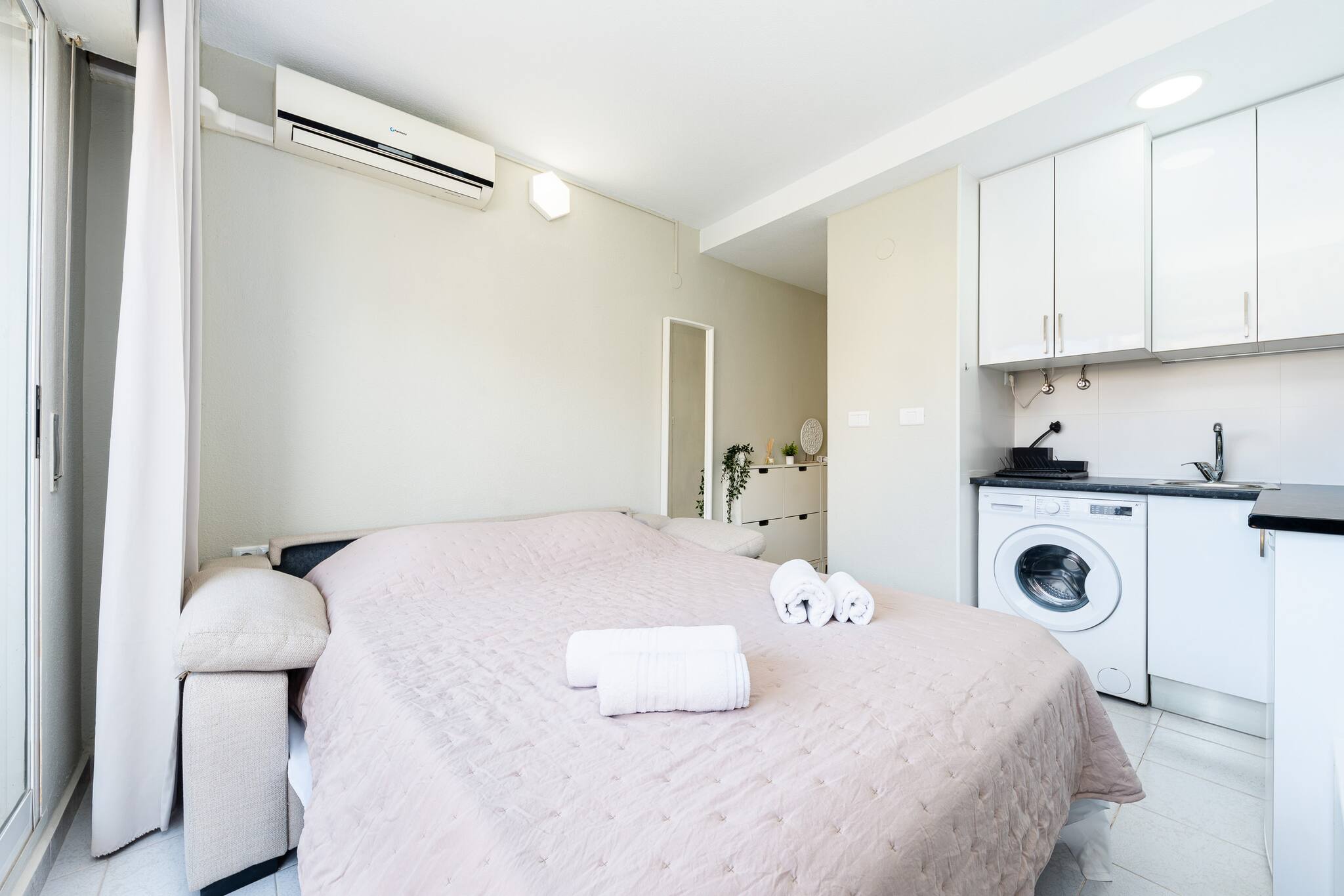 Apartament znajduje sie w miejscowości Torrevieja ma 1 sypialnie i obłożenie dla 2 osób. Przytulny i bardzo jasne Obiekt o powierzchni mieszkalnade 21 m². Znajduje się w pobliżu 400 m supermarkecie "Carrefour", 1 km supermarkecie "Mercadona", 1 km supermarkecie "Lidl", 2 km miasta "Centro Torrevieja", 2 km plaży piaskowej "Playa del Cura", 2 km plaży skalistej "Paseo marítimo", 2 km plaży piaskowej "Playa de Los Locos", 2 km plaży skalistej "Calas de Los Locos", 3 km plaży piaskowej "Playa del Acequión", 3 km plaży piaskowej "Playa del Acequión", 4 km plaży skalistej "Cabo Cervera", 4 km miasta "La Mata", 9 km polu golfowym "Villamartín Golf", 10 km polu golfowym "Las Ramblas", 11 km polu golfowym "Campoamor Golf" i Znajduje się w osiedlu mieszkaniowym strefa i w centrum miasta.Zakwaterowanie jest wyposażone w następujące rzeczy Pralka, Internet (wifi), Pompa ciepła, Klimatyzacja, Prywatny, 1 TV.Kuchnia otwarta od płyta indukcyjna, jest wyposażone w chłodziarka, naczynia/sztućce, przybory kuchenne, ekspres do kawy i czajnik.