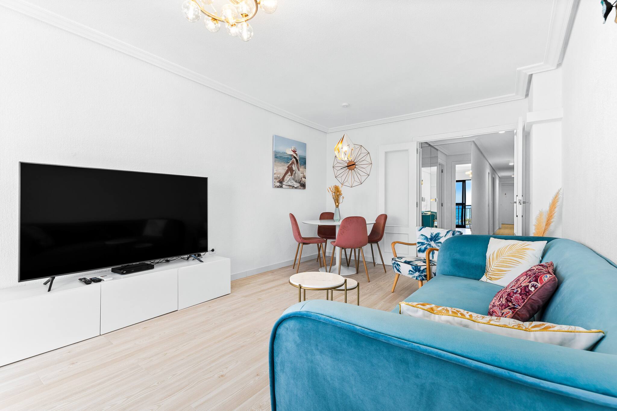 Apartament znajduje sie w miejscowości Torrevieja ma 4 sypialnie i obłożenie dla 8 osób. O powierzchni mieszkalnade 95 m². Zakwaterowanie jest wyposażone w następujące rzeczy Pralka, Internet (wifi), Klimatyzacja, garaż, 1 TV. Niezależna kuchnia od płyta indukcyjna, jest wyposażone w chłodziarka, mikrofalówka, zamrażarka, naczynia/sztućce, przybory kuchenne, ekspres do kawy, opiekacz/toster i czajnik.
