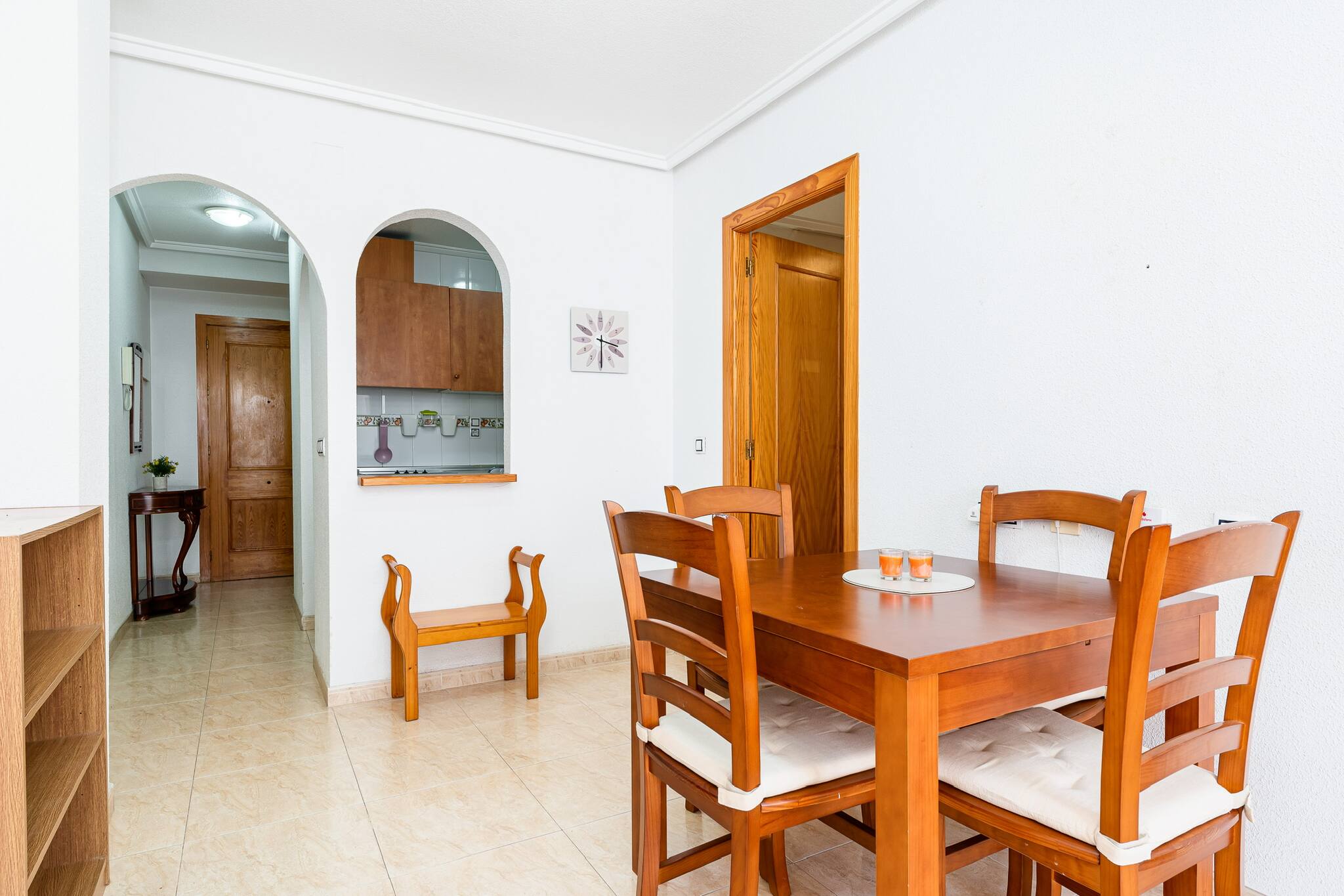 Apartament znajduje sie w miejscowości Torrevieja ma 2 sypialnie i obłożenie dla 4 osób. Przytulny i duży Obiekt o powierzchni mieszkalnade 70 m². Znajduje się w pobliżu 100 m supermarkecie "Mercadona", 200 m supermarkecie "Consum", 200 m supermarkecie "Supermercados locales", 700 m plaży piaskowej "Playa del Cura", 800 m plaży skalistej "Paseo Juan Aparicio", 1 km plaży skalistej "Cala del Palangre", 1 km plaży piaskowej "Playa de Los Locos", 2 km plaży piaskowej "Playa del Acequión", 2 km plaży piaskowej "Playa de Los Náufragos", 4 km plaży skalistej "Cabo Cervera", 4 km miasta "La Mata", 10 km miasta "Orihuela Costa", 10 km polu golfowym "Villamartín Golf", 11 km polu golfowym "Las Ramblas", 12 km polu golfowym "Campoamor Golf" i Znajduje się w osiedlu mieszkaniowym strefa i tuż obok morza.Zakwaterowanie jest wyposażone w następujące rzeczy Pralka, Internet (wifi), Pompa ciepła, Klimatyzacja, Prywatny, 1 TV.Niezależna kuchnia od płyta indukcyjna, jest wyposażone w chłodziarka, mikrofalówka, piekarnik, zamrażarka, naczynia/sztućce, przybory kuchenne, ekspres do kawy, opiekacz/toster i czajnik.