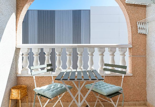Apartament znajduje sie w miejscowości Torrevieja ma 2 sypialnie i obłożenie dla 4 osób. Przytulny i duży Obiekt o powierzchni mieszkalnade 70 m². Znajduje się w pobliżu 100 m supermarkecie "Mercadona", 200 m supermarkecie "Consum", 200 m supermarkecie "Supermercados locales", 700 m plaży piaskowej "Playa del Cura", 800 m plaży skalistej "Paseo Juan Aparicio", 1 km plaży skalistej "Cala del Palangre", 1 km plaży piaskowej "Playa de Los Locos", 2 km plaży piaskowej "Playa del Acequión", 2 km plaży piaskowej "Playa de Los Náufragos", 4 km plaży skalistej "Cabo Cervera", 4 km miasta "La Mata", 10 km miasta "Orihuela Costa", 10 km polu golfowym "Villamartín Golf", 11 km polu golfowym "Las Ramblas", 12 km polu golfowym "Campoamor Golf" i Znajduje się w osiedlu mieszkaniowym strefa i tuż obok morza. Zakwaterowanie jest wyposażone w następujące rzeczy Pralka, Internet (wifi), Pompa ciepła, Klimatyzacja, Prywatny, 1 TV. Niezależna kuchnia od płyta indukcyjna, jest wyposażone w chłodziarka, mikrofalówka, piekarnik, zamrażarka, naczynia/sztućce, przybory kuchenne, ekspres do kawy, opiekacz/toster i czajnik.