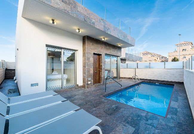 Dom znajduje sie w miejscowości Orihuela Costa ma 5 sypialnie i obłożenie dla 10 osób. Przytulny i bardzo jasne Obiekt o powierzchni mieszkalnade 180 m². Znajduje się w pobliżu 2 km polu golfowym "Villamartín Golf", 4 km polu golfowym "Las Ramblas Golf", 4 km plaży piaskowej "Playa Flamenca (Cala Estaca)", 4 km plaży piaskowej "Cala Mosca (Playa Flamenca)", 5 km plaży piaskowej "Playa de La Zenia (Cala Bosque)", 6 km plaży piaskowej "Cala Capitán (Cabo Roig)", 6 km polu golfowym "Real Club de Golf Campoamor", 9 km polu golfowym "Las Colinas Golf & Country Club" i Znajduje się w osiedlu mieszkaniowym strefa i w kompleksie mieszkaniowym. Zakwaterowanie jest wyposażone w następujące rzeczy Pralka, Grill, żelazko, Internet (wifi), Suszarka do włosów, Pompa ciepła, Klimatyzacja, Prywatny, parking na otwartej przestrzeni, 1 TV. Kuchnia otwarta od płyta indukcyjna, jest wyposażone w chłodziarka, mikrofalówka, piekarnik, zamrażarka, naczynia/sztućce, przybory kuchenne, ekspres do kawy, opiekacz/toster i czajnik.