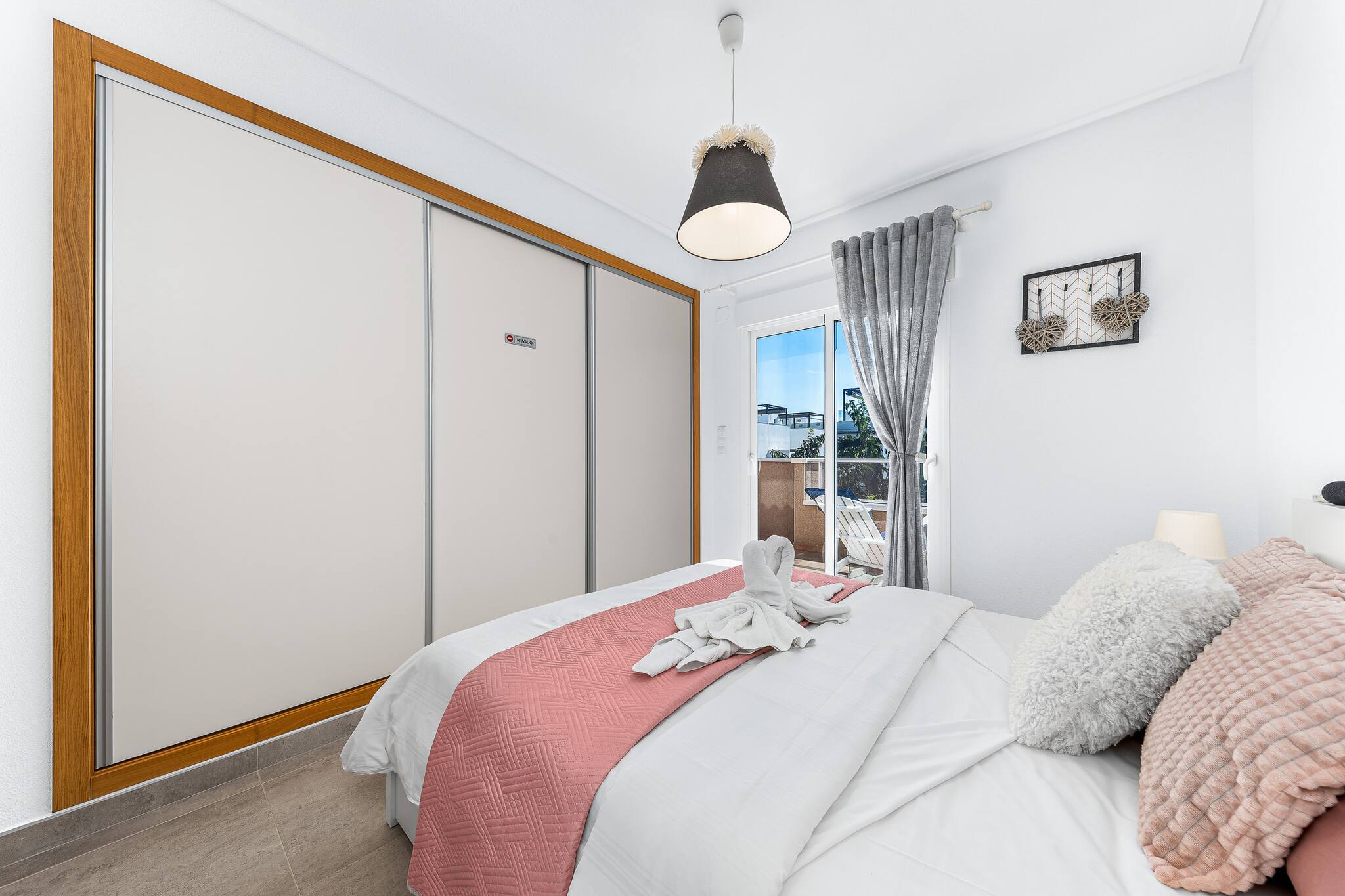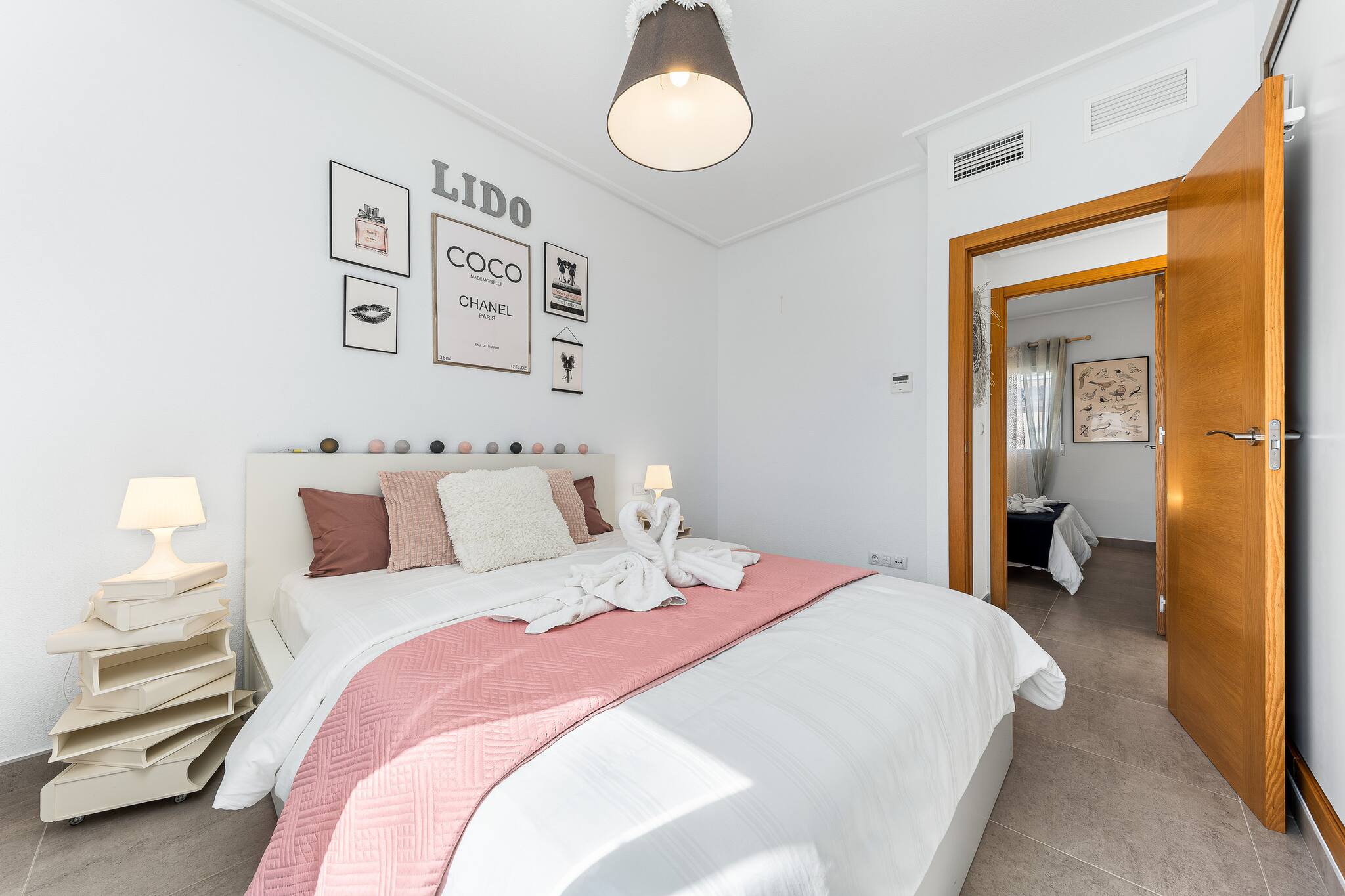 Dom znajduje sie w miejscowości Pilar de la Horadada ma 2 sypialnie i obłożenie dla 4 osób. O powierzchni mieszkalnade 86 m². Znajduje się w pobliżu 700 m plaży piaskowej "Playa de las Higuericas", 900 m plaży piaskowej "Playa del Conde", 1 km plaży piaskowej "Playa de los Jesuitas", 1 km plaży skalistej "Higuericas", 1 km plaży skalistej "Paseo marítimo", 1 km plaży piaskowej "Playa del Puerto", 2 km supermarkecie "Consum", 3 km supermarkecie "Lidl", 3 km supermarkecie "Mercadona", 3 km miasta "Pilar de la Horadada", 3 km miasta "Mil Palmeras", 8 km polu golfowym "Lo Romero Golf", 10 km polu golfowym "Villamartín Golf", 11 km polu golfowym "Campoamor Golf", 11 km polu golfowym "Las Ramblas" i Znajduje się w osiedlu mieszkaniowym strefa i tuż obok morza.Zakwaterowanie jest wyposażone w następujące rzeczy Meble ogrodowe, Pralka, żelazko, Internet (wifi), Suszarka do włosów, Pompa ciepła, Klimatyzacja, Basen Wspólny, 1 TV.Niezależna kuchnia od płyta indukcyjna, jest wyposażone w chłodziarka, mikrofalówka, piekarnik, naczynia/sztućce, przybory kuchenne, ekspres do kawy, opiekacz/toster i czajnik.