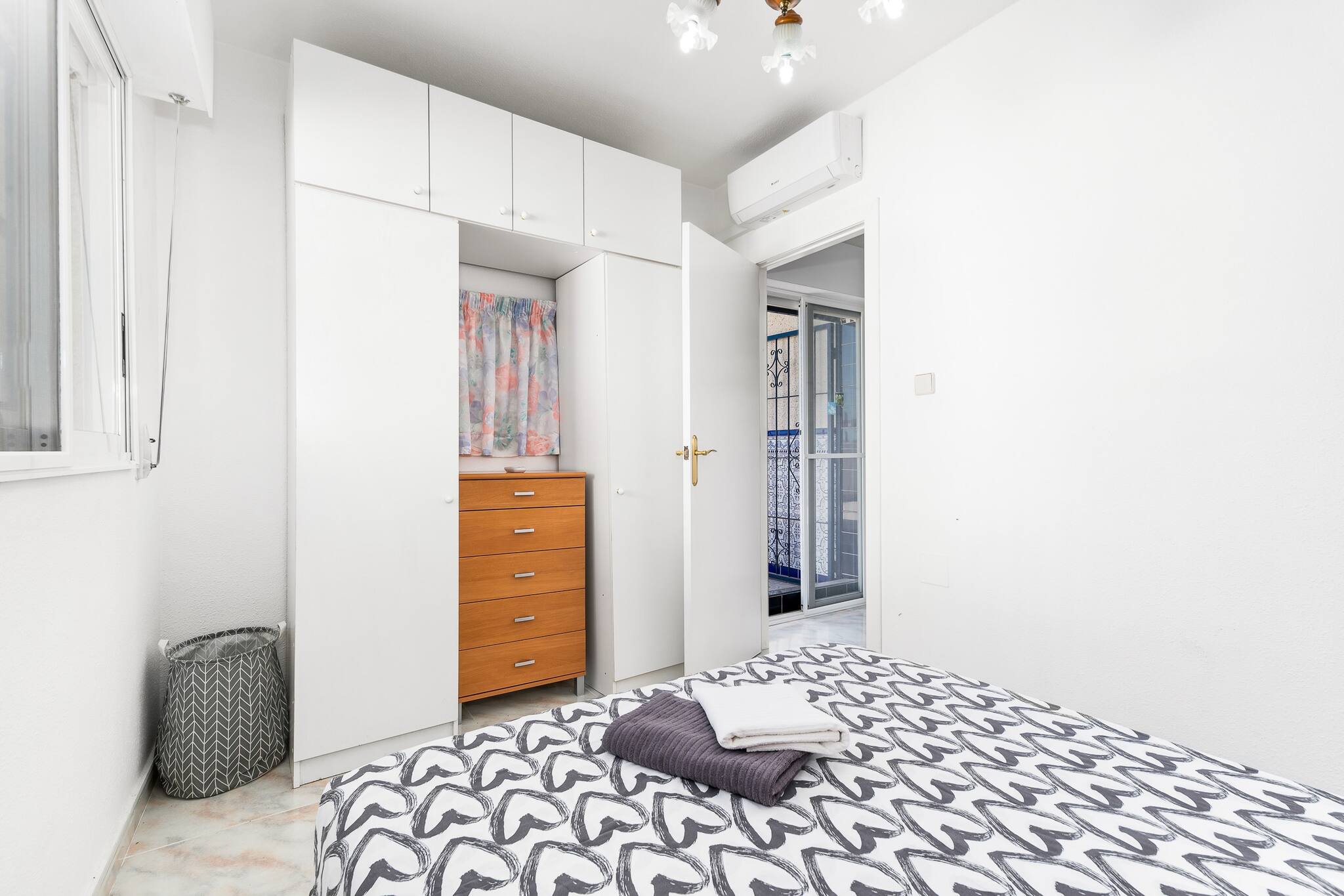 Dom znajduje sie w miejscowości Torrevieja ma 3 sypialnie i obłożenie dla 6 osób. Przytulny i przestronne Obiekt o powierzchni mieszkalnade 100 m². Znajduje się w pobliżu 1 km supermarkecie "Carrefour", 1 km supermarkecie "Centro comercial Habaneras", 1 km supermarkecie "Mercadona", 2 km supermarkecie "Lidl", 4 km plaży skalistej "Cabo Cervera", 4 km plaży skalistej "Calas de Torrevieja", 4 km plaży piaskowej "Playa de Los Locos", 4 km plaży piaskowej "Playa del Cura", 4 km miasta "Centro Torrevieja", 5 km plaży piaskowej "Playa de La Mata", 5 km miasta "La Mata", 5 km plaży piaskowej "Playa del Acequión", 6 km miasta "Los Montesinos", 6 km plaży skalistej "Cala Ferrís", 7 km polu golfowym "La Marquesa Golf", 12 km polu golfowym "Vistabella Golf", 13 km polu golfowym "Villamartín Golf" i Znajduje się w osiedlu mieszkaniowym strefa i w kompleksie mieszkaniowym. Zakwaterowanie jest wyposażone w następujące rzeczy Pralka, Internet (wifi), Pompa ciepła, Klimatyzacja, Basen Wspólny, 1 TV. Niezależna kuchnia od płyta indukcyjna, jest wyposażone w chłodziarka, mikrofalówka, piekarnik, zamrażarka, naczynia/sztućce, przybory kuchenne, ekspres do kawy i czajnik.
