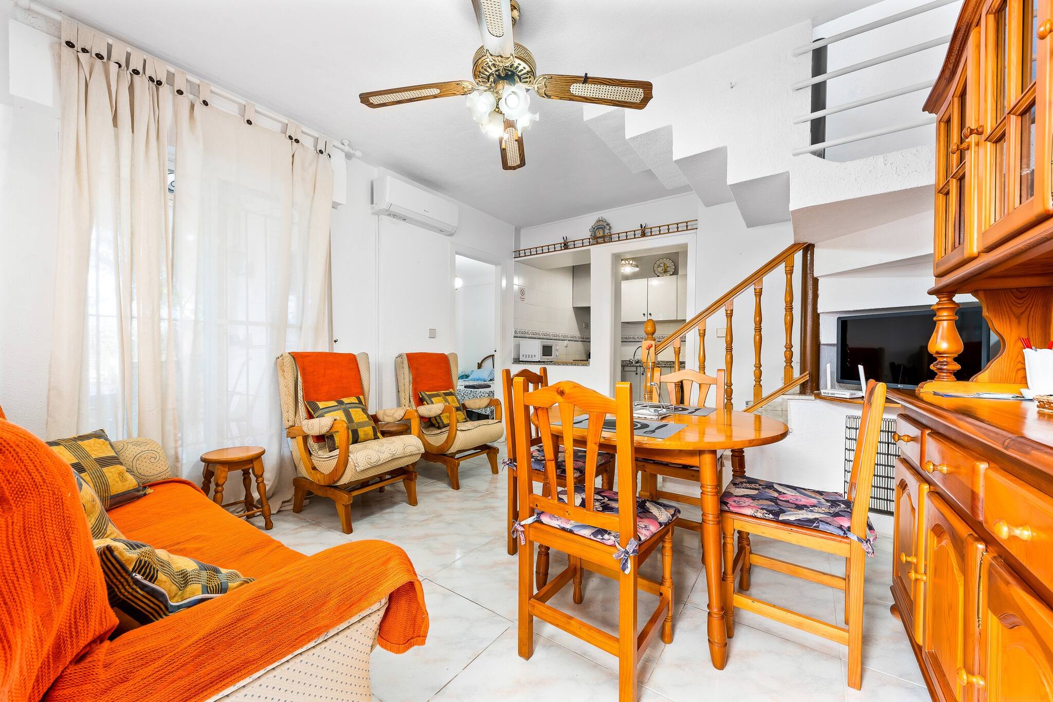 Dom znajduje sie w miejscowości Torrevieja ma 3 sypialnie i obłożenie dla 6 osób. Przytulny i przestronne Obiekt o powierzchni mieszkalnade 100 m². Znajduje się w pobliżu 1 km supermarkecie "Carrefour", 1 km supermarkecie "Centro comercial Habaneras", 1 km supermarkecie "Mercadona", 2 km supermarkecie "Lidl", 4 km plaży skalistej "Cabo Cervera", 4 km plaży skalistej "Calas de Torrevieja", 4 km plaży piaskowej "Playa de Los Locos", 4 km plaży piaskowej "Playa del Cura", 4 km miasta "Centro Torrevieja", 5 km plaży piaskowej "Playa de La Mata", 5 km miasta "La Mata", 5 km plaży piaskowej "Playa del Acequión", 6 km miasta "Los Montesinos", 6 km plaży skalistej "Cala Ferrís", 7 km polu golfowym "La Marquesa Golf", 12 km polu golfowym "Vistabella Golf", 13 km polu golfowym "Villamartín Golf" i Znajduje się w osiedlu mieszkaniowym strefa i w kompleksie mieszkaniowym.Zakwaterowanie jest wyposażone w następujące rzeczy Pralka, Internet (wifi), Pompa ciepła, Klimatyzacja, Basen Wspólny, 1 TV.Niezależna kuchnia od płyta indukcyjna, jest wyposażone w chłodziarka, mikrofalówka, piekarnik, zamrażarka, naczynia/sztućce, przybory kuchenne, ekspres do kawy i czajnik.