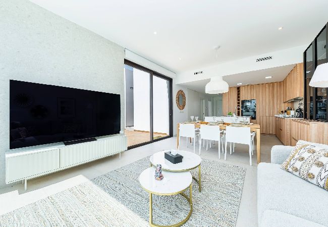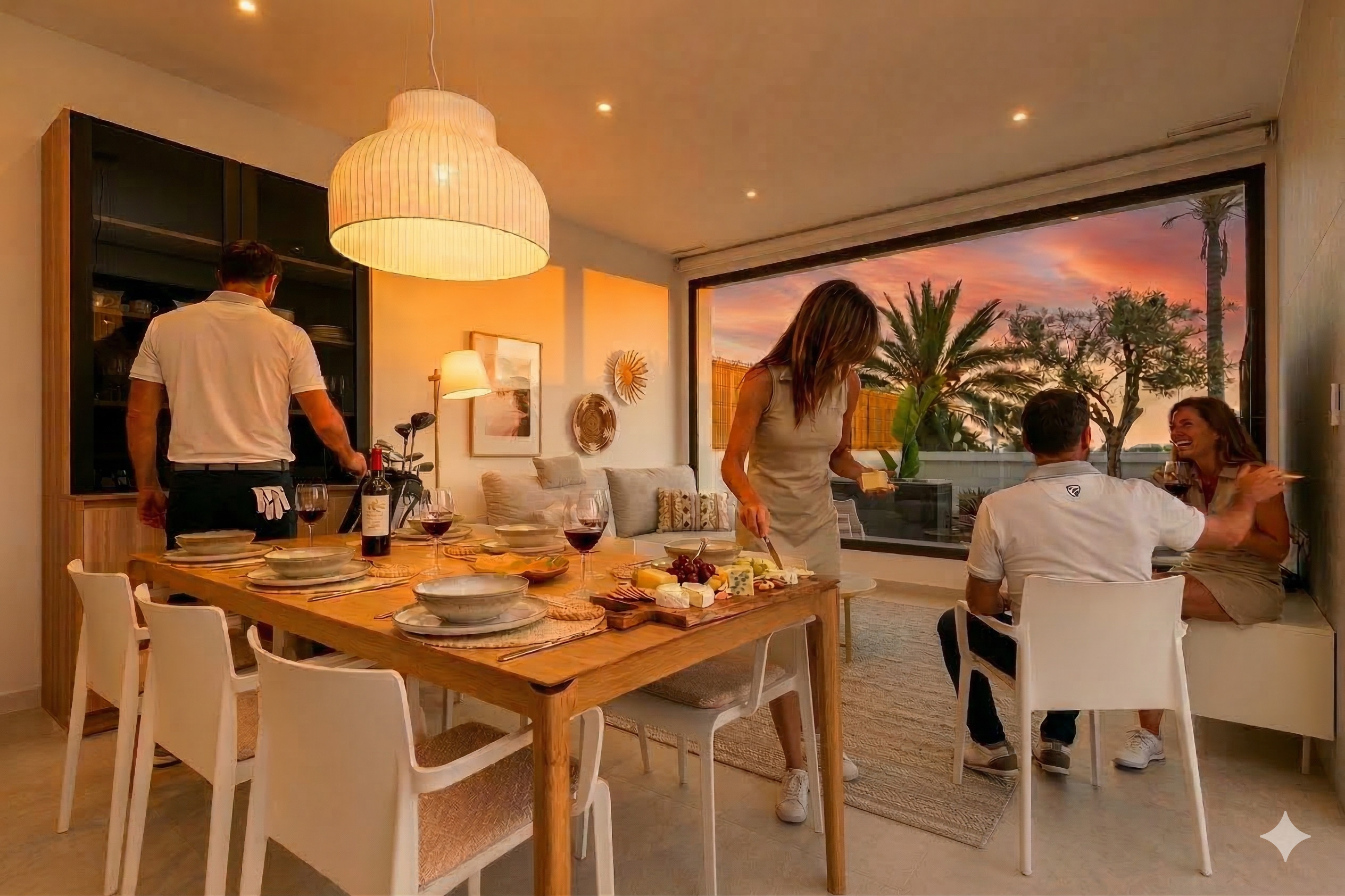 Willa znajduje sie w miejscowości Los Alcazares ma 3 sypialnie i obłożenie dla 6 osób. Przytulny i przestronne Obiekt o powierzchni mieszkalnade 145 m². Znajduje się w pobliżu 300 m plaży piaskowej "Playa de Los Narejos", 300 m supermarkecie "Consum", 700 m plaży piaskowej "Playa de Las Palmeras", 1 km plaży piaskowej "Playa del Espejo", 1 km miasta "Los Narejos", 2 km supermarkecie "Mercadona", 2 km plaży piaskowej "Playa Carrión", 2 km polu golfowym "Roda Golf", 2 km supermarkecie "Lidl", 3 km miasta "San Javier", 3 km polu golfowym "La Serena Golf", 6 km polu golfowym "Mar Menor Golf Resort", 15 km polu golfowym "Lo Romero Golf" i Znajduje się w idealnej dla rodzin strefa i tuż obok morza. Zakwaterowanie jest wyposażone w następujące rzeczy Pralka, Grill, Internet (wifi), Klimatyzacja, Prywatny, parking na otwartej przestrzeni, 1 TV. Kuchnia otwarta od płyta indukcyjna, jest wyposażone w chłodziarka, mikrofalówka, piekarnik, zamrażarka, naczynia/sztućce, przybory kuchenne, ekspres do kawy, opiekacz/toster i czajnik.
